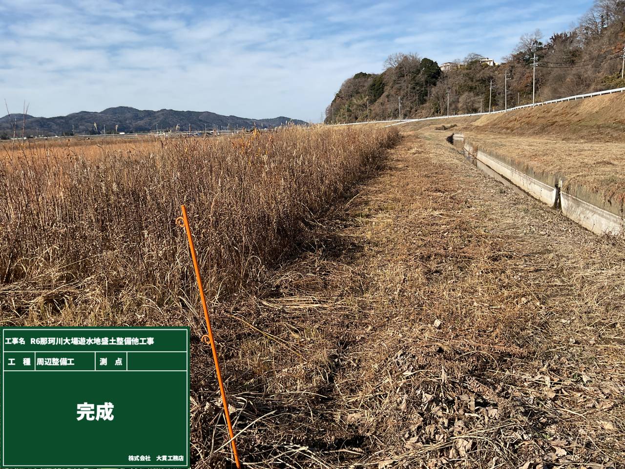 今回の工事は、洪水による水害を軽減する工事ということで、周辺整備でも水の通る道を特に重点的に整備をしています。
