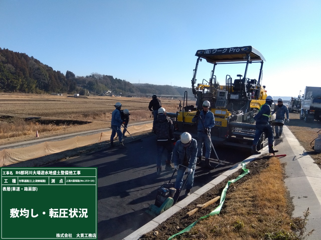 いよいよ、舗装の最上部にある”表層”の作業がスタートしました!