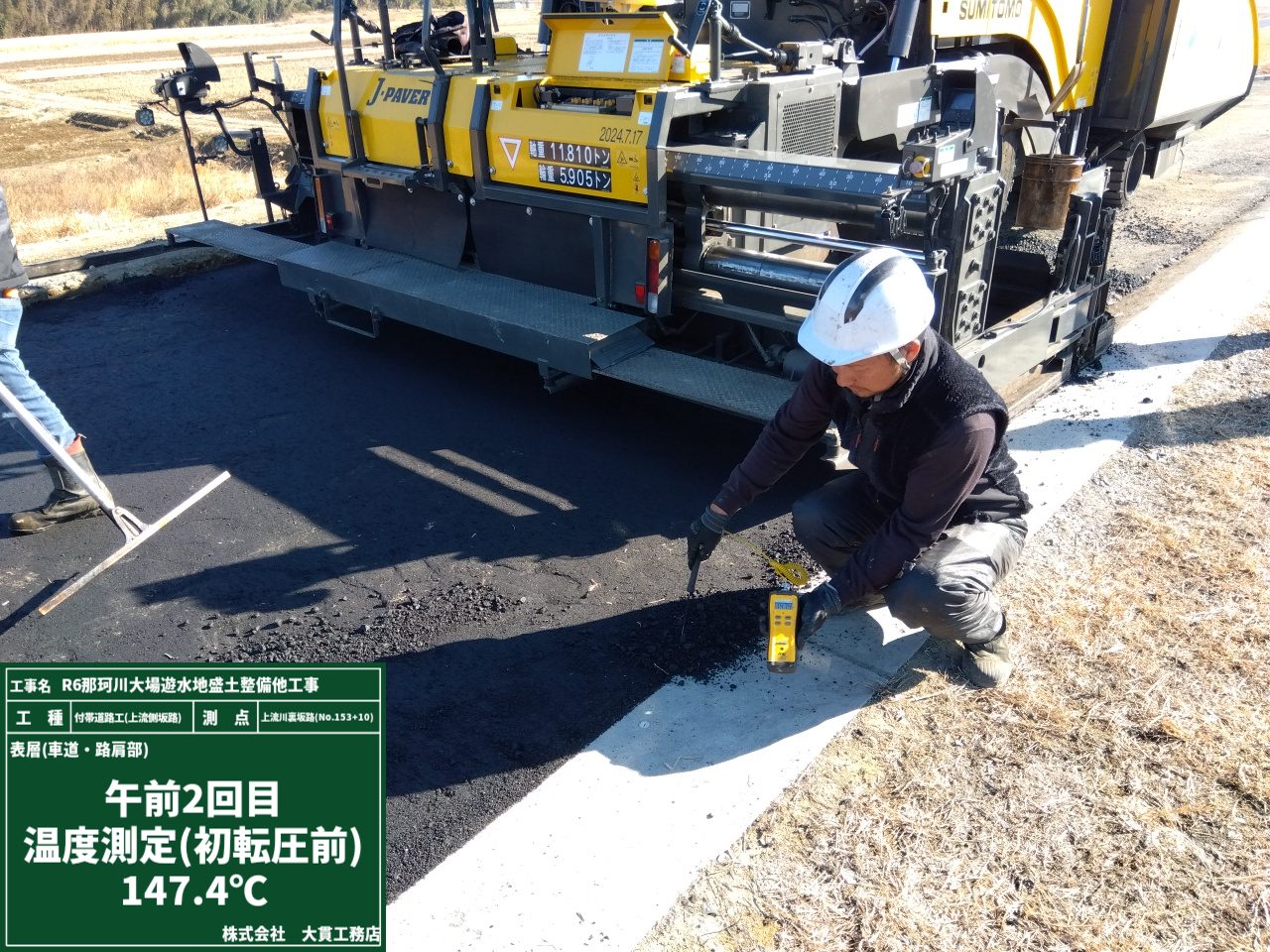 アスファルトは温度管理が命✨ 写真で温度を測っているのは、