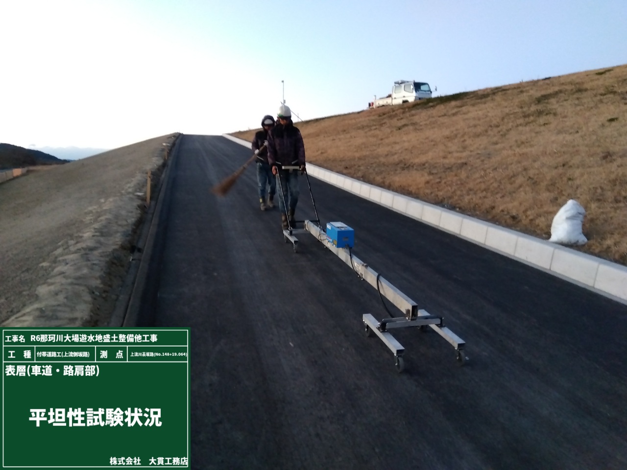 ・平坦性試験で、舗装された道路の凸凹度合いを測定