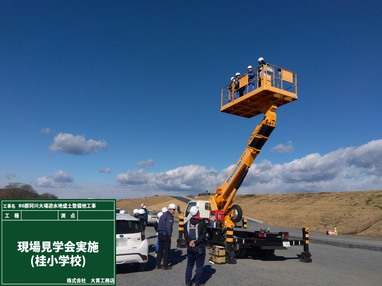 ショベルカーを実際に動かしてみたり、高所作業車のプラットホームに乗り上昇してみたりーー