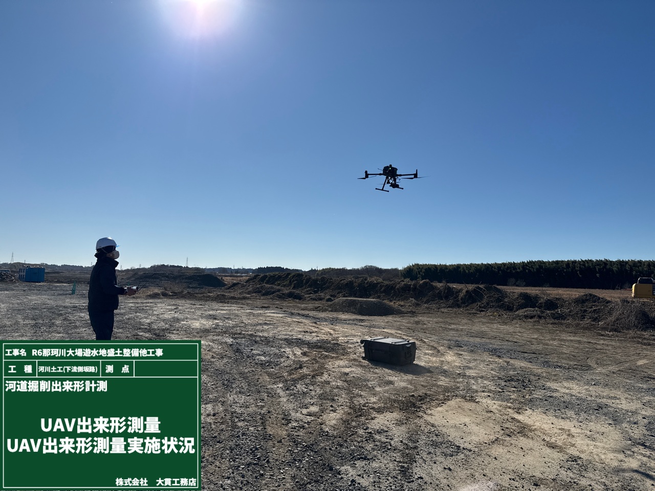 現場での作業が完了したタイミングで出来形計測を行いますが、それをドローンで行います!