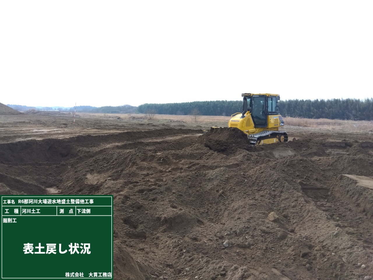 剥ぎ取って保管していた表土が、埋戻しのためにストック場から現場に帰ってきました。
