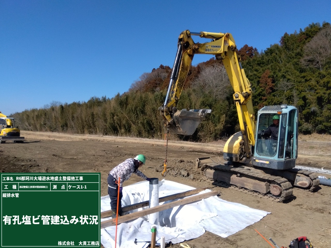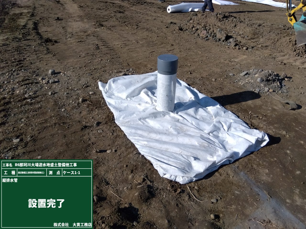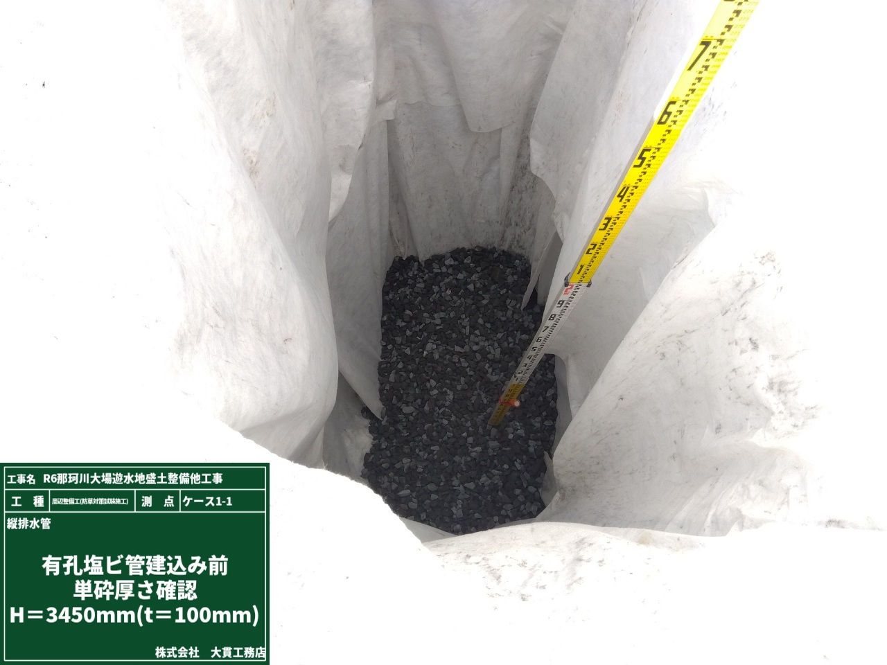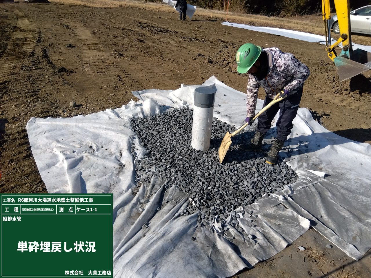 塩ビ管を設置後は、砂利で埋戻しをして、不織布をかぶせて設置完了です✨