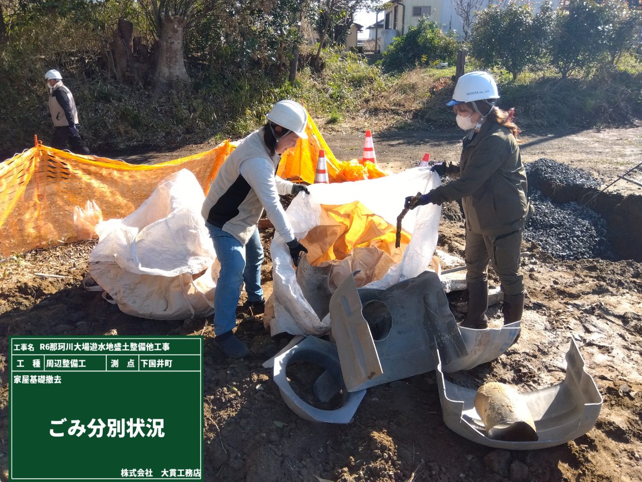 そして、コンクリート以外もたくさんのゴミが出たので、現場で分別している様子が3枚目の写真です。
