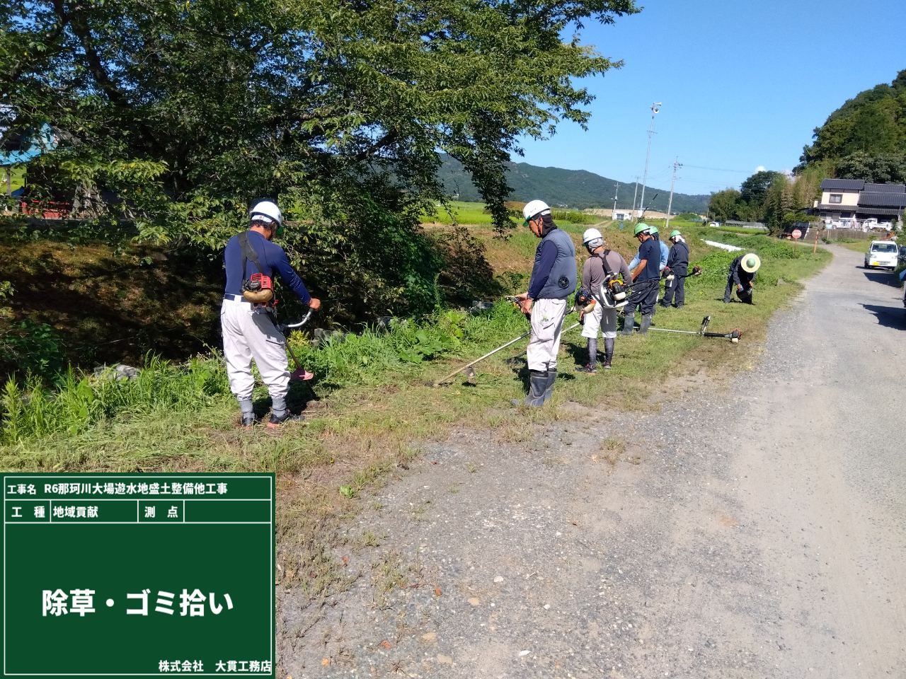現場では、作業箇所の除草作業を行っていますが、今回は、周辺の除草作業やゴミ拾いもあわせて実施しました。