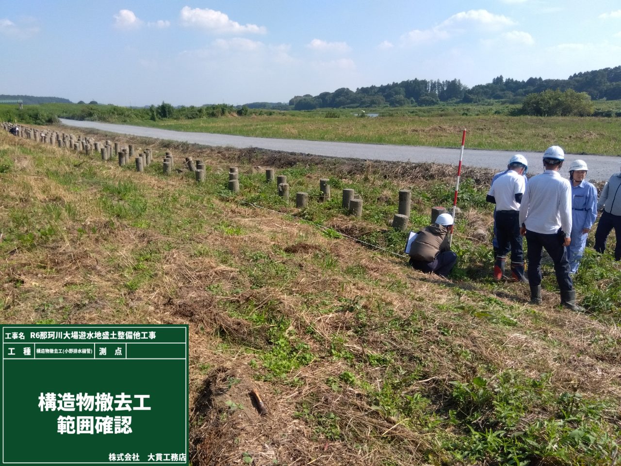構造物を撤去していくんですが、まずは範囲確認を行います。