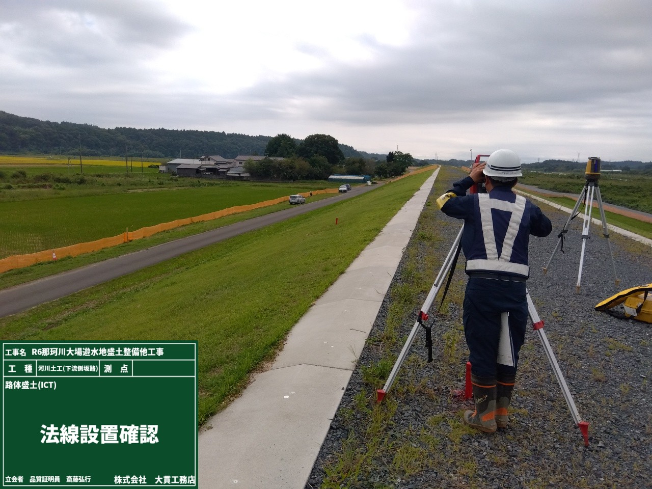 座標をしっかり確認し、設計書に沿った位置に正確に法線を設置しました。