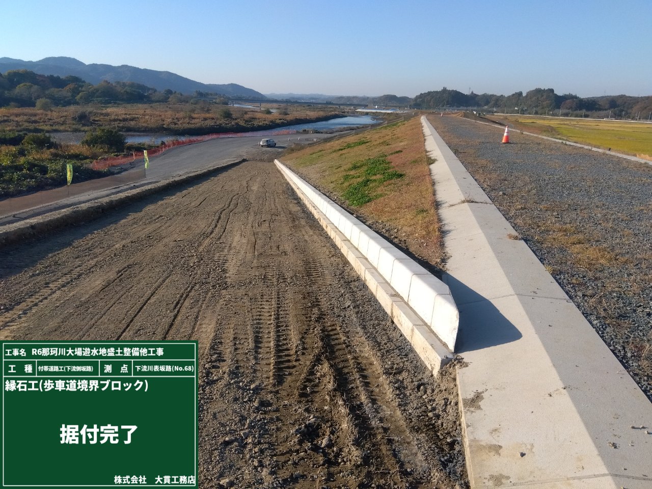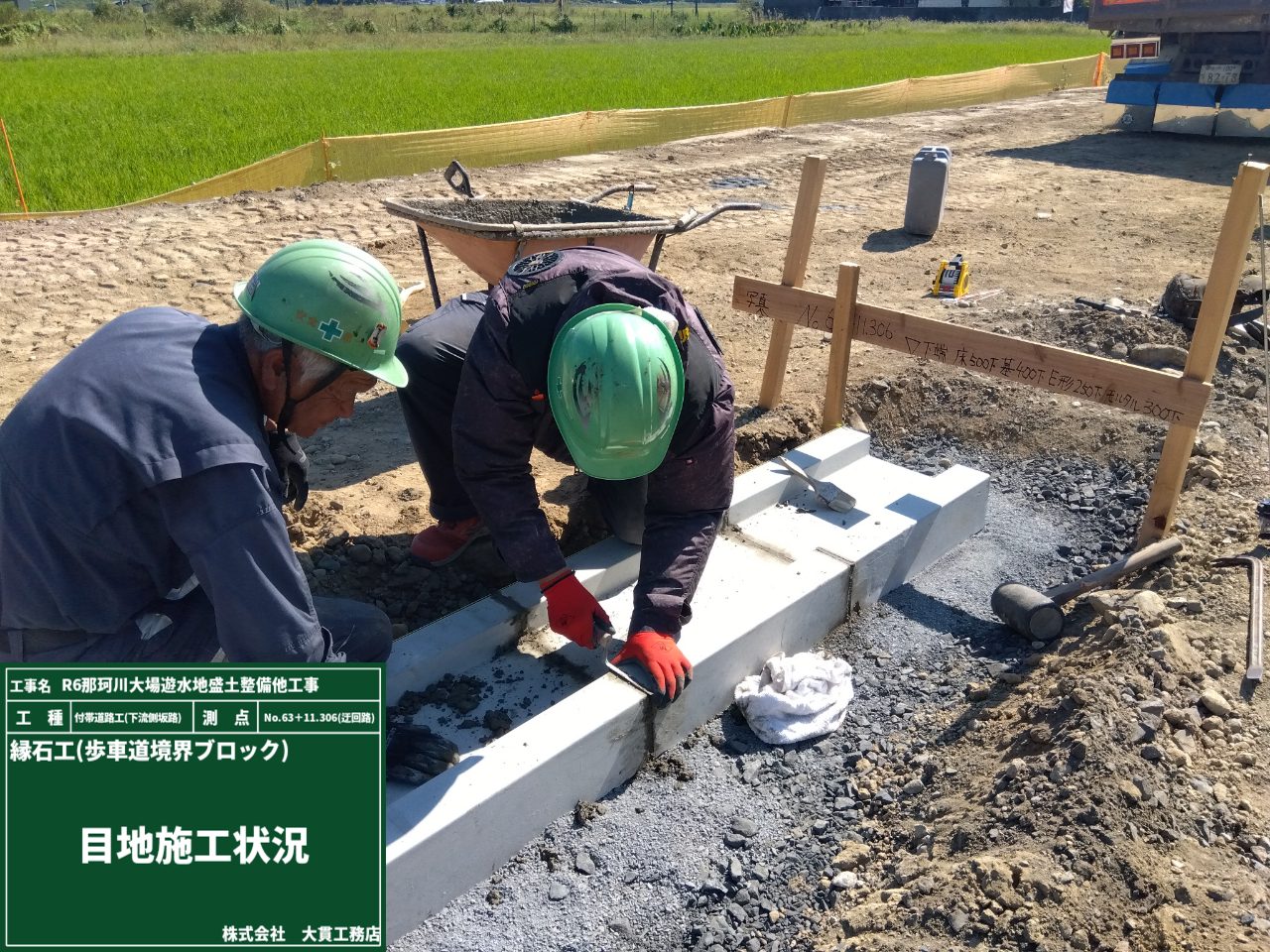協力会社さんが施工してくれた「歩車道境界ブロック」。