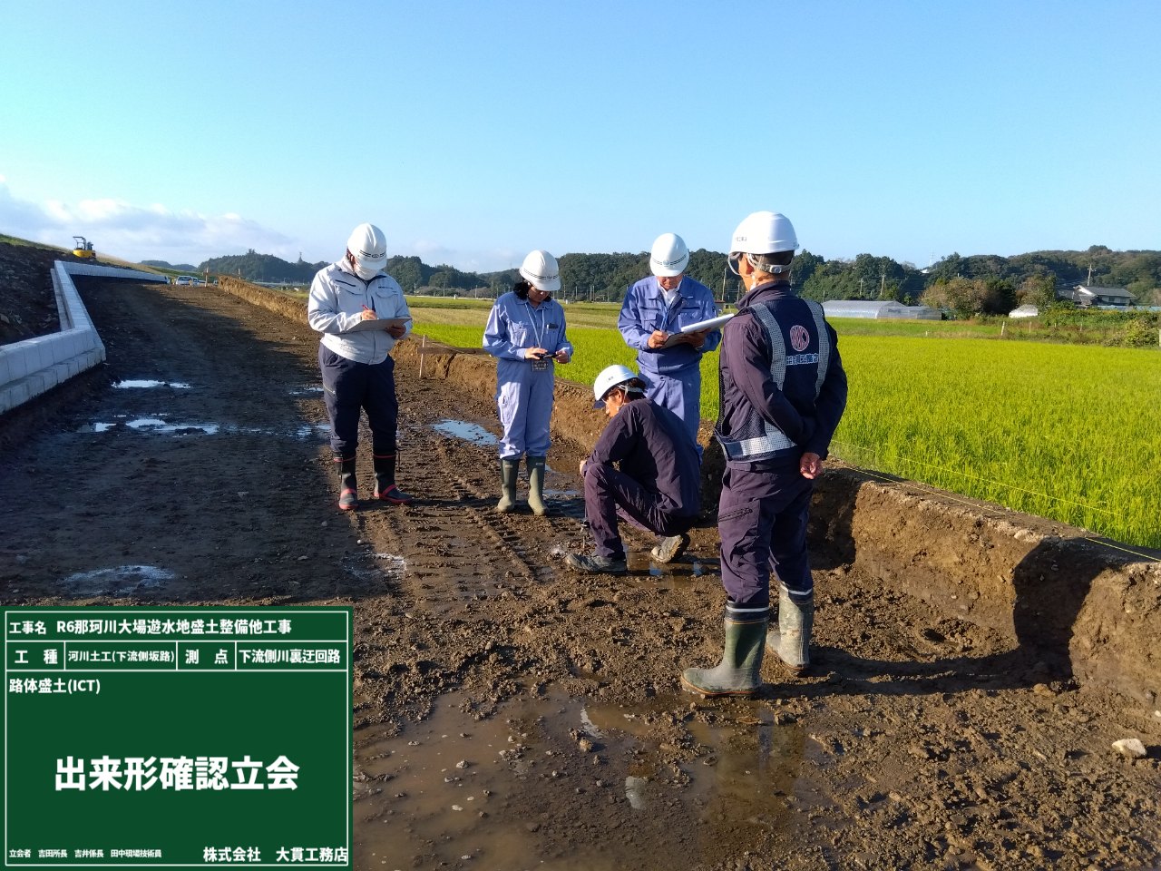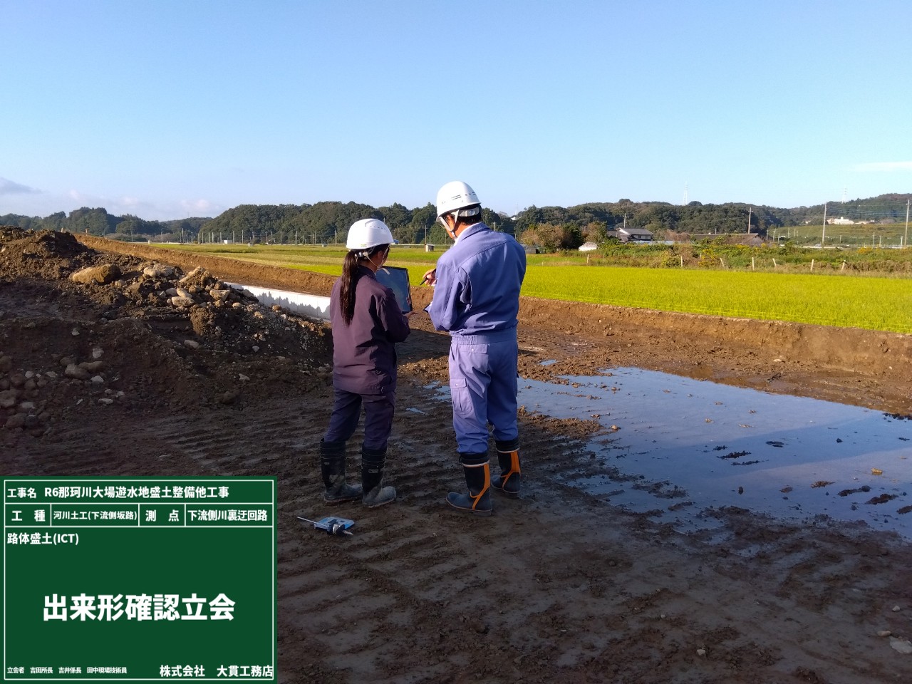 測定した数値をお見せし、実際の出来形をご確認いただきました。