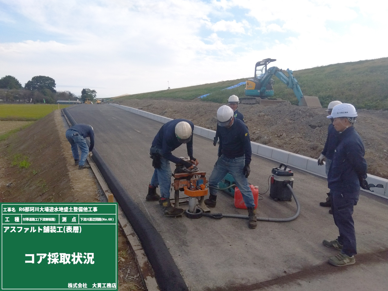 出来上がったアスファルト舗装に穴なんて――と驚くなかれ。これも、品質確認に欠かせない大事な工程のひとつです☝