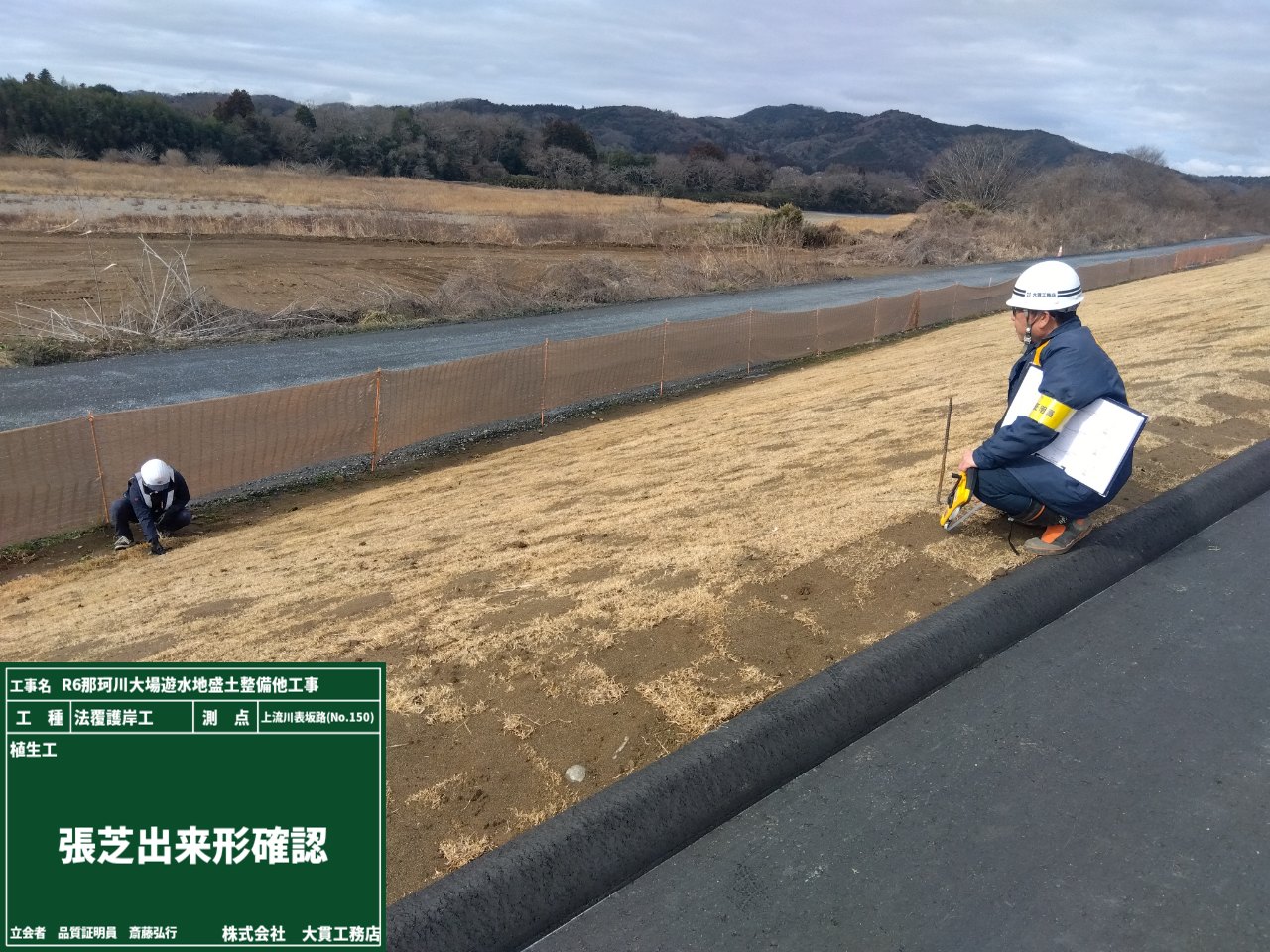 張芝の作業が終わり、出来形確認を行いました👀